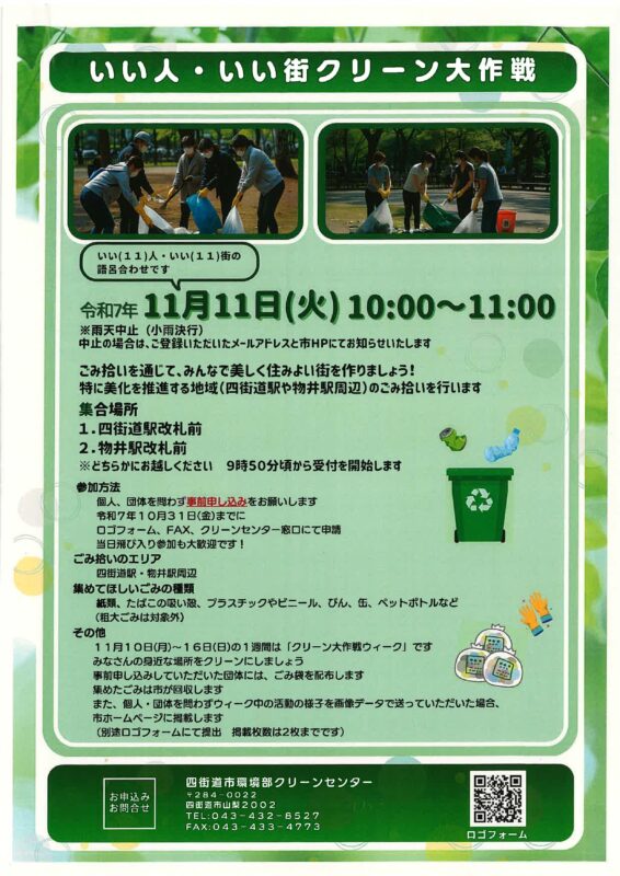 ワイ・テイ・エス本社のある四街道市による”いい人・いい街クリーン大作戦”に参加しました。 ゴミ拾いを通じて美しく住みやすい街を作るために企画されたイベントで、他の企業様と共に周辺道路、歩道などのゴミ拾いを行いました。